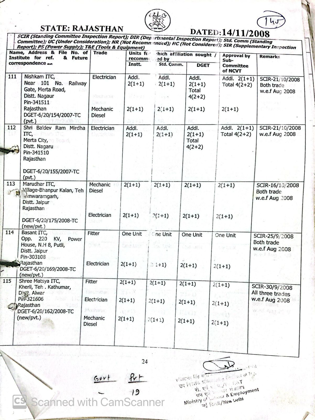 | Name of the Institute | NISHKAM PVT. I.T.I MERTA ROAD |