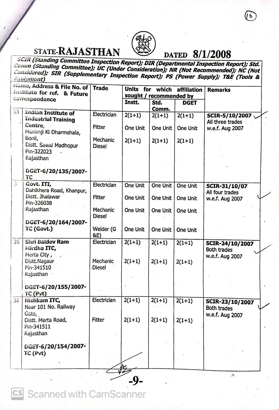 | Name of the Institute | NISHKAM PVT. I.T.I MERTA ROAD |